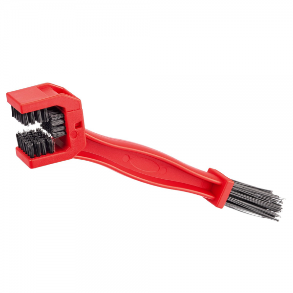 Cerdas de nylon con soporte de polipropileno con forma anatómica que facilita la limpieza de las cadenas de transmisión de motocicletas.